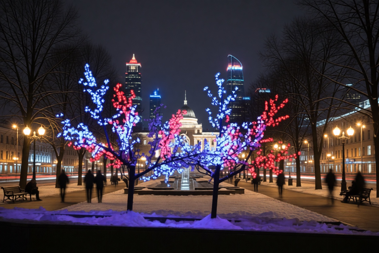 Когда обычного украшения мало, а хочется чего-то по-настоящему впечатляющего — это дерево станет идеальным решением. Трехметровая сакура в цветах российского флага создает атмосферу настоящего торжества.